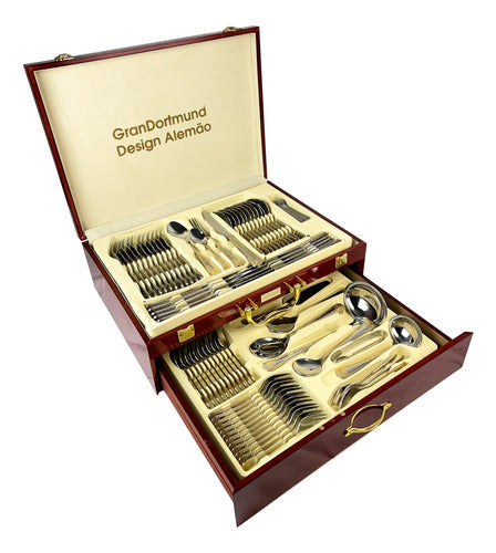 Faqueiro inox Banhado a ouro GranDortmund 84 peas malibu Altamente Durvel