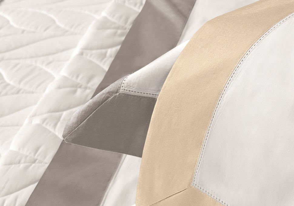 Mostruário: CMA07 Queen Trussardi 600 Fios Cetim 100% Algodão Egípcio San Carlo Branco/Bege