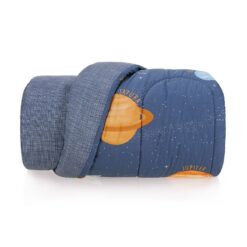 um edredom que possu uma estampa diferenciada, onde mostra a galxia de uma forma divertida e espacial, que pode trazer uma forma mais descontrada e que mexe com a imaginao nos baixinhos. Sua composio 100% algodo, conferindo toque suave, qualidade, beleza e espacial. Coleo Aconchego