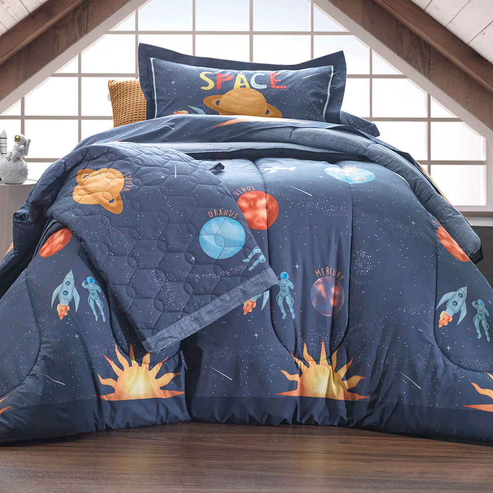 Edredom Infantil Solteiro Karsten 180 fios Percal 100% Algodao Galaxia Estampado, uma aventura espacial. Tenha produtos Karsten em seu lar!Edredom Infantil Solteiro Karsten 180 fios Percal 100% Algodao Galaxia Estampado, uma aventura espacial. Tenha produtos Karsten em seu lar!